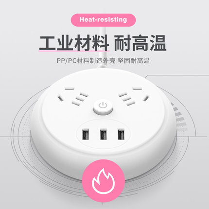收纳线多功能插座,自带收纳线底座,易收拾,小巧身材,方便携带,黏贴墙面,儿童安全门,智能USB口,耐高温材质,送拍墙贴多孔位设计,更多空间不拥挤!【赠运费险】