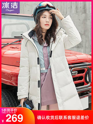 【冰洁 2020年新款 情侣款特力菲三防面料韩版宽松中长款羽绒服 199元包邮】
