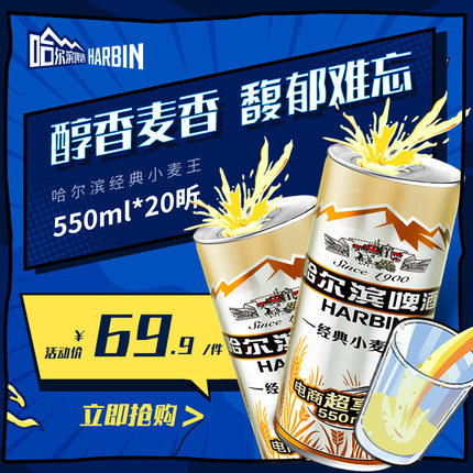 哈尔滨啤酒旗舰店69.9元,可领20元优惠券,实付49.9元到手,这款哈尔滨小麦王啤酒优选黄金小麦酿造,传承百年哈啤醇正风味,口感平顺甘醇,泡沫浓厚,麦芽度为10.0°P,酒精度≥3.6%vol。规格:550ml*20听