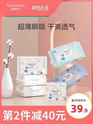 【全棉时代 奈丝公主 100%全棉超净吸日夜用组合卫生巾6包 63片39.9元包邮(第二件同价)】