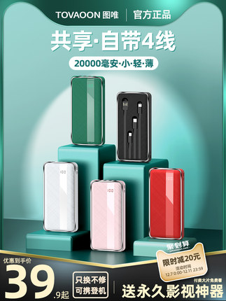 【自带4线全兼容,进口电芯:TOVAO·ON图唯 X8 超薄充电宝 券后19.9元包邮】