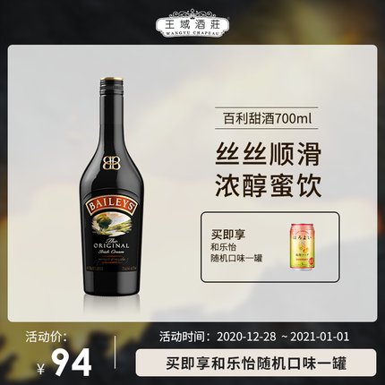 【爱尔兰进口 Baileys/百利 原味甜酒 750ml 79元狂欢价 送和乐怡 随机口味1罐】
