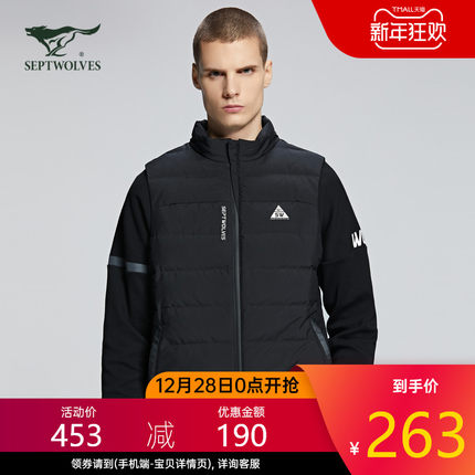 【商场同款,90%白鸭绒,防油防泼水:七匹狼 男士 2020秋季新品立领羽绒马甲 双重优惠263元包邮(吊牌价1099元)】