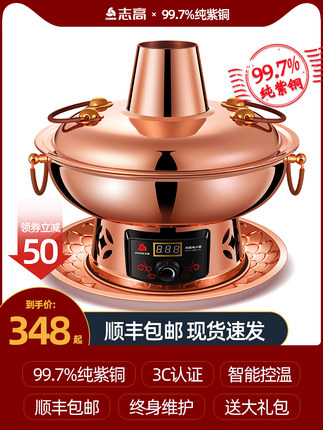【志高 老北京纯铜火锅 智能控温 电碳两用 劵后348元包顺丰】