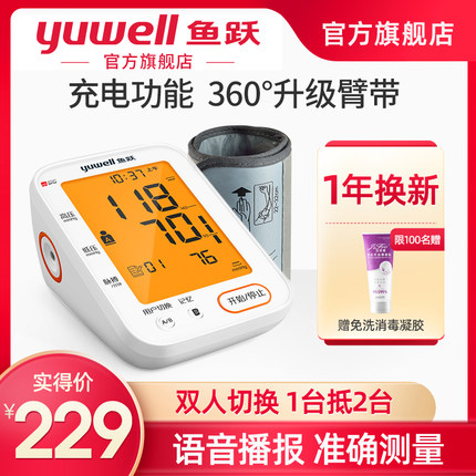 【鱼跃 上臂式 高精度电子血压计 21万4.9高评分 189元包邮】