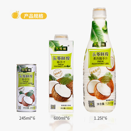 【2小时锁鲜,原汁原味无添加:245mlx6罐 头等椰 海南鲜榨椰子汁 券后19.9元包邮(京东满减后29.9元)】