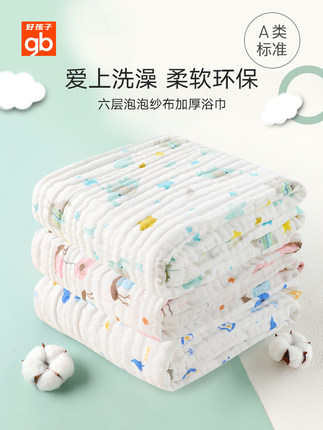 A类标准,100%纯棉六层纱布,透气排湿,目前商家gbhome旗舰店售价¥99,可领取¥60优惠券,实付新低¥39包邮,多款可选。gb好孩子婴儿纯棉6层纱布浴巾,120*120cm超大尺寸,超柔加厚40S六层全棉加密纱布,凹凸泡泡结构,蓬松面圈,亲肤柔软,吸水性强,达到A类标准,更加呵护宝宝的肌肤,采用了环保活性印染,卡通图案萌趣生动,不易褪色。