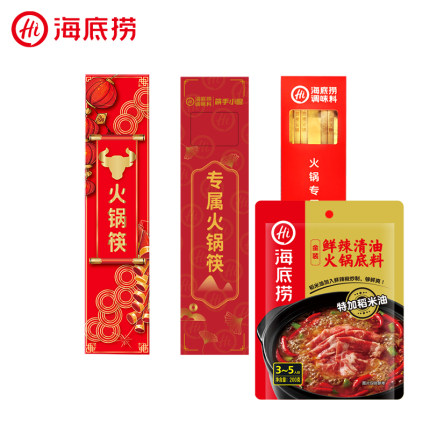 【海底捞 家用加长火锅竹筷筷子礼盒 5双*2件+赠金装清油火锅底料200g 9.9元包邮】
