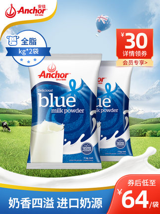 【新西兰进口# 安佳 成人全脂奶粉 1kg*2袋 券后108元包邮】