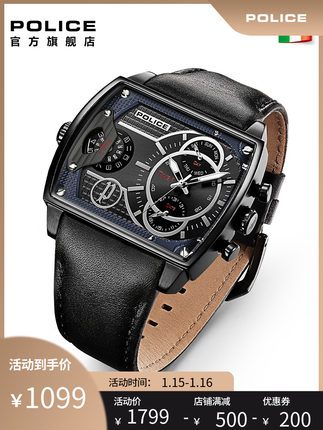 两地计时,多色可选。POLICEPL.14698男款石英表,表盘采用方形酷感表盘,利落线条塑造男性阳刚魅力。弧形表镜,多功能表盘,立体层次设计,蚀刻表背,纯牛皮表带,尽显时尚潮流。