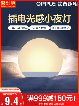 欧普照明插电式光感小夜灯,超低能耗,一年不到2度点,即插即用,轻轻一按即可控制小夜灯,省心又便捷。3000K暖光,如月光般宁静柔和,光效轻柔,无蓝光,温馨呵护入睡的孩童和起夜的家人。