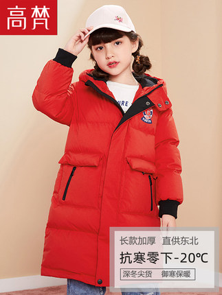 【Goldfarm 高梵 中大童过膝长款加厚90%白鸭绒连帽羽绒服(110~140码)199元包邮】