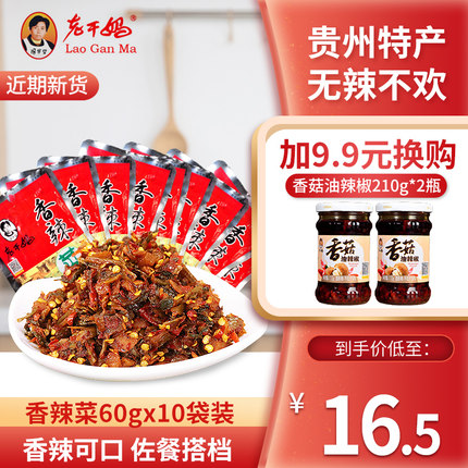 老干妈 香辣菜 60g*10袋,香辣可口,佐餐搭档。天猫有商家领券拍下11.5元包邮