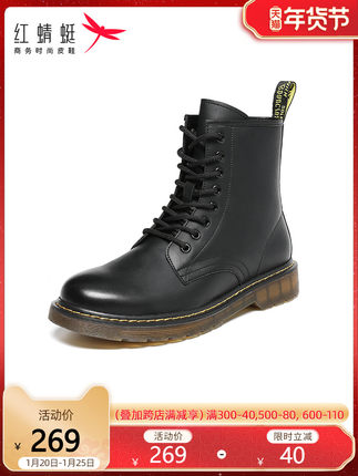 红蜻蜓正品男鞋,2020秋冬新款马丁靴,男英伦风短靴,潮高帮工装机车靴子,潮酷有型,马丁靴男英伦风