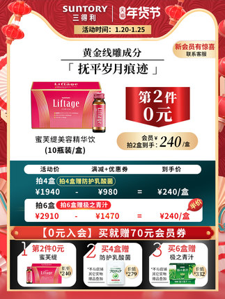 【日元原装进口,250倍抗初老:10瓶x2件 三得利 蜜芙缇胶原蛋白液态饮口服液 拍2件460元直邮到手】