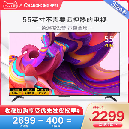 长虹55英寸超薄远场语音智慧屏4K超高清液晶电视,免遥控器远场语音智能,声控全场,AIoT全域物联,2+16GB,支持7天无理由退货,赠运费险!