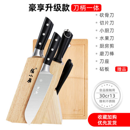 张小泉官方旗舰店, 20-25日 天猫年货节, ¥179元 年货价, -20元优惠券, =159元到手价,基础款此价,7件套装,包含砍骨刀,切片刀,小厨刀,水果刀等等,包含砧板和底座。刀面刀头一体设计,易清洁干净卫生,手工开刃,刀口硬度高,锋利耐用。