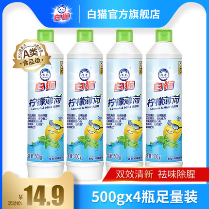 白猫柠檬薄荷洗洁精,双效清新,祛味除腥,超效强力除油污,无磷配方,易冲洗无残留,温和不伤手,居家必备~