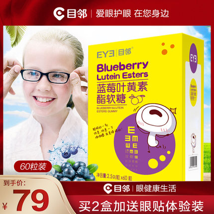 【爱尔眼科专业出品,目邻 蓝莓叶黄素酯软糖 2.5g*60粒 49元包邮】