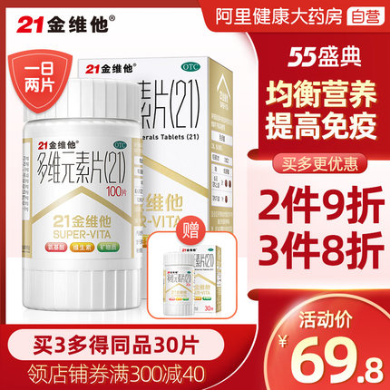 【阿里健康大药房 21金维他 多种复合维元素片 100片 54.8元盛典价】