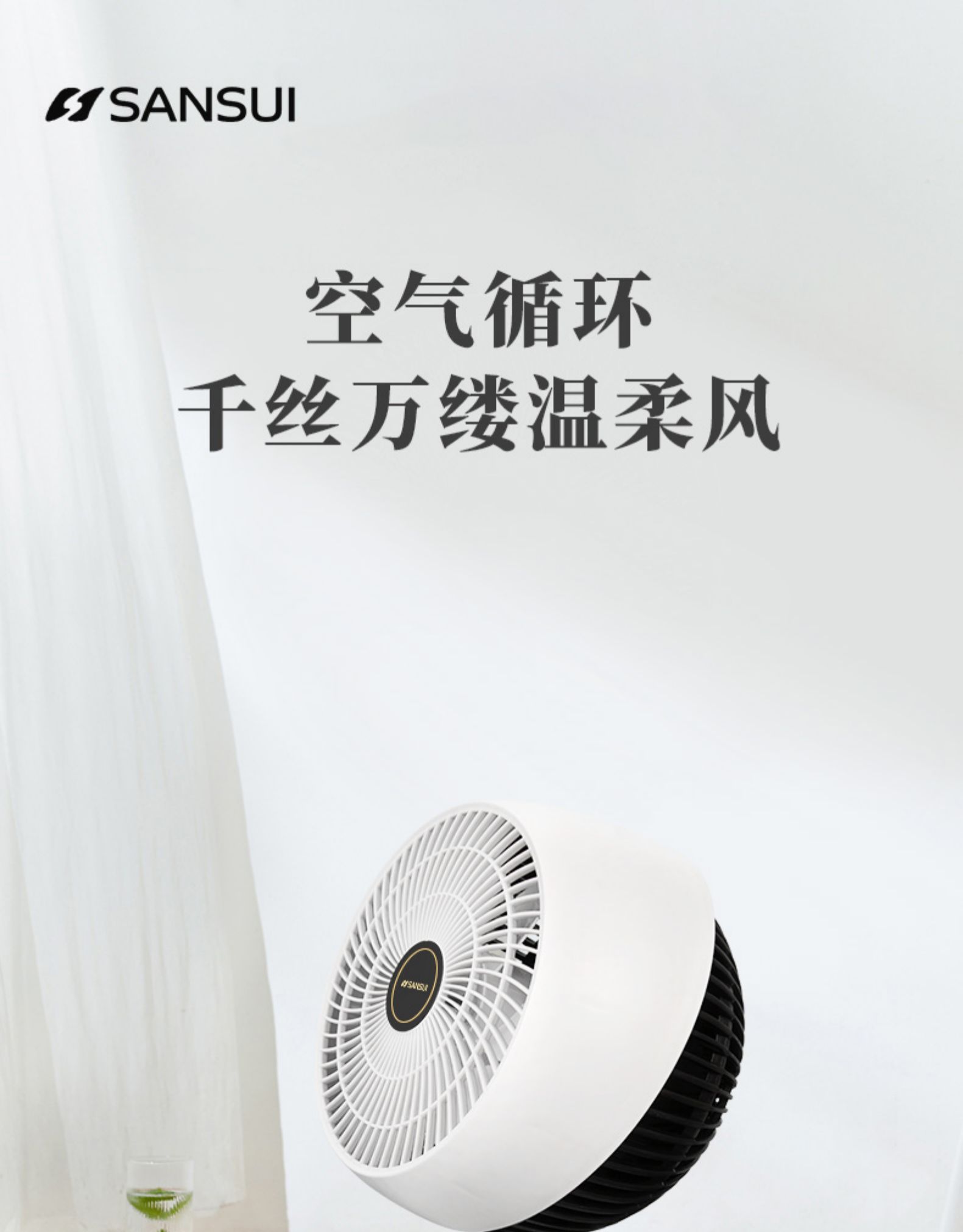 这款 Sansui 山水 HX160 涡轮空气循环扇,采用独特五叶涡流风道,风速均匀柔软,3档风速可调,满足不同环境需求,支持上下90度、左右70度摇头,实用方便。