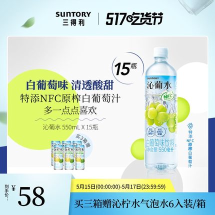 【NFC原榨白葡萄汁:550mlx15瓶 三得利 沁葡水 白葡萄风味饮料 48元包邮】