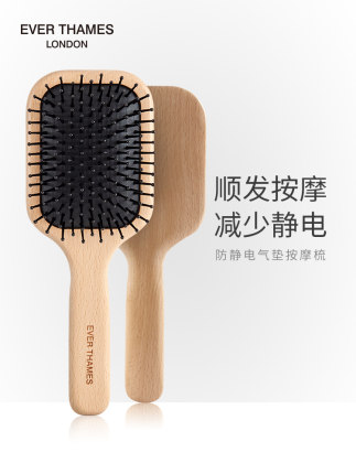 梳齿特别添加防静电成分,可以有效减少梳发时产生的静电,顺发更服帖,十一排梳齿,齿面更宽大更舒缓,唤醒头皮活力,缓解头部疲劳,梳齿顶部采用圆头设计触感柔软,梳发时,能够刺激头皮神经帮助促进头部血液循环,高弹性气囊设计,气囊压力适中,在梳头过程中,帮助舒缓头部疲劳。精选上乘榉木,防霉防裂,细致手工打磨,入手温润舒适。