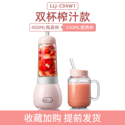 双杯配置,家用梅森杯,外带便携果汁杯,Tritan材质放心耐用,目前天猫商城小熊电器官方旗舰店 粉色款售价¥99,下单立减5元,可使用¥45优惠券,实付新低¥49包邮,绿色款略贵¥20,外观略有区别,采用的是高硼硅玻璃材质。
