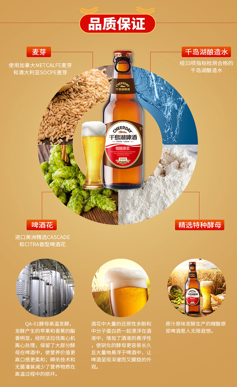 这款CHEERDAY 千岛湖啤酒 乐享时光 啤酒,酒精度≥3.1%VOL,原汁麦浓度8°P。采自千岛湖水,传统工艺酿造,富含酵母,酒体呈朦胧状,香气清雅,营养丰富。易拉盖瓶盖设计,开盖更方便;本款啤酒为浑浊型啤酒,少量沉淀为保留的酵母,可放心饮用,开启后摇匀,口感更好。