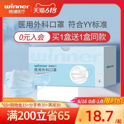 【winner 稳健 一次性医用外科口罩 50只*2盒 14.9元包邮】