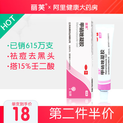 【阿里大药房,鹤叔推荐】评价68w,好评高达4.9!丽芙甲硝唑凝胶祛痘消炎膏药,无激素,无酒精,去螨虫、去黑头、去痘印,家里必备,解决肌肤问题!