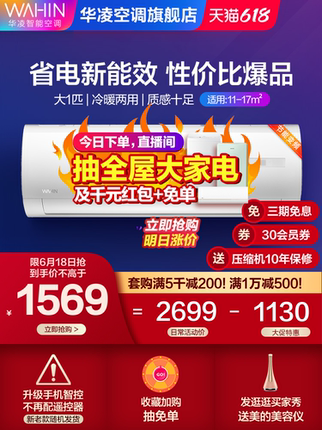 天猫华凌空调旗舰店预告,16号开始抢购,下单立减1100元,领取30元优惠券,到手价1569元!WAHIN华凌KFR-35GW/N8HF3壁挂空调1.5匹,新三级能效,支持eco盛典模式。支持第三代自清洁出风。一键“智控温”,采用r32冷媒,电辅热1050w,制热量4600w,制冷量3500w。新三级能效,比原三级能效省电13%,ECO省电模式8小时低至2.5度电,高频速冷暖,迅速满足冷暖需求,夏日秒速享清凉。