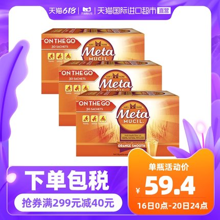 折合1.8元/袋~天猫国际目前售价178元,下单1件,使用99-5元优惠券,叠加88vip,实付164元包税包邮。metamucil(美达施)是美国品牌,隶属于宝洁集团(P&G)旗下,在英国,澳洲都有代工厂。自创立至今,深受广大用户们的喜爱,仍在为成为行业中的优质品牌而努力。规格:30袋*3盒~保健品不能代替药物,如出现身体不适,请及时就医。