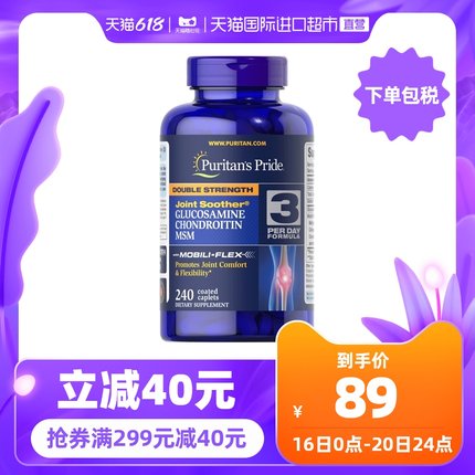 【美国原装进口【Puritan’s Pride/普丽普莱】双倍氨糖维骨力软骨素 1瓶240粒装 满减+券后79元包邮包税】