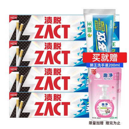 【狮王 渍脱双效牙膏 150gx4支 36.9元包邮 送狮王洗手液200ml】