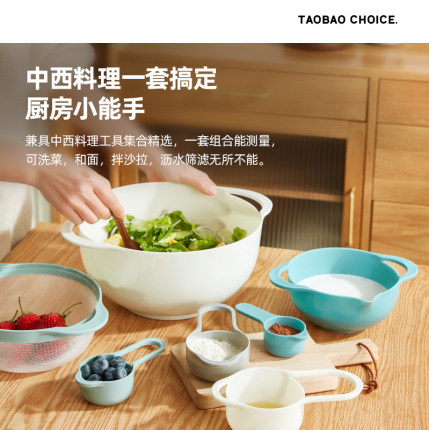 烘焙碗量勺8件套装,1套搞定中西料理,PP食品级接触材质放心用,层叠收纳不占空间更省事~天猫淘宝心选旗舰店售价¥59.9,可领¥20优惠券,实付¥39.9包邮