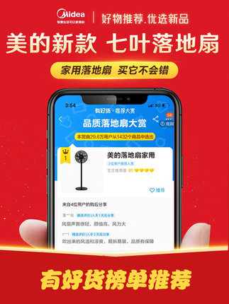 【美的 SAD30MB 7叶劲风 极简立式电风扇 129元包邮】
