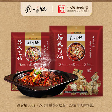 中国特色十佳火锅,中华老字号品牌,全国连锁门店超1000家,到手加热即食,省事,还可以当做底料搭配其他食材也很美味。天猫刘一锅香旗舰店118元,点此领取20元优惠券,实付98元到手,规格500gx3袋,近期好价。刘一锅筋头巴脑,精选大块牛腩、牛蹄筋、牛板筋、秘制高汤搭配36种中草药料包熬制,肉质软嫩,汤浓醇厚味道鲜美。加热即食,还可自行搭配各种食材,吃起来更过瘾。筋头巴脑是指带皮带筋,难嚼难炖的牛肉,这东西很不容易炖烂,需要多炖一会儿,但是这款东来顺特制浓汤筋头巴脑,是已经加工好的熟食,回家只要热一下就可以吃了,比较省事。