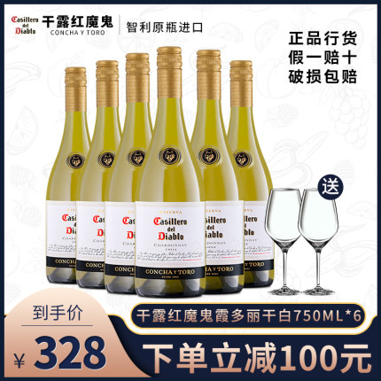 【智利名星酒,干露酒厂原瓶进口:750mlx6瓶 红魔鬼 珍藏级 霞多丽干白葡萄酒 328元包邮】