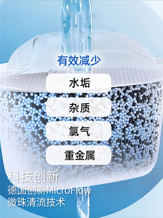 德国的Brita碧然德是过滤水系统行业的领头羊,这款Marella 海洋系列滤水壶容量为3.5L,每次可过滤2L,采用BPA-Free无毒塑料,防滑手柄,橡胶软脚,指压式开闭注水口,不用打开上盖就可加水,使用比较方便。顶部带有电子计数器,可以根据已过滤的水量、使用时间,以及水的硬度来显示滤芯状态,做出是否更换滤芯提示。过滤水符合国际标准ANSI/NSF53号和42号的要求,可以过滤NSF认证的多种有害污染物,并且去除自来水中的氯气等味道,让水的口感更好。滤芯方面,德国原装进口的Maxtra+,比传统的一代滤芯在过滤能力方面增加了20%,还改良了MicroFlow Technology 微流控技术,使水的味道比以往更好。滤芯中所含的活性炭,能有效过滤水中的重金属、水碱、杀虫剂、有机杂质、氯气和异味。离子交换树脂降低的引致石灰垢的硬度物质,并减少铝、铜和铅等金属的含量,滤水壶只会滤除硬水成份的矿物质,但它并不会把水中的所有矿物质都过滤掉,反而会保有一些有益矿物质及微量元素,适用多种型号滤水壶。滤芯使用寿命4周/100升,但也需视水质不同而定,适合2~3人使用。