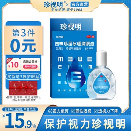 【珍视明 四味珍层冰硼眼药水 15ml 缓解疲劳干涩 防视力下降 拍2盒19元包邮 拍3瓶30元】
