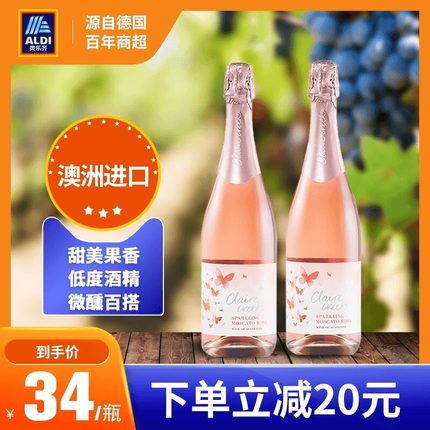 【澳洲原瓶进口 奥乐齐 莫斯卡托 起泡葡萄酒 750ml*2瓶 58元包邮】