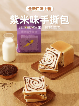 【榴芒一刻 现做紫米味/原味/牛奶/芒果 手撕面包 245g等多规格*2袋22.9元包邮】