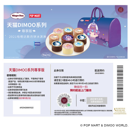 【哈根达斯&POP MART联名款,太空系列冰淇淋月饼礼盒券288元包邮】