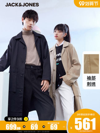 【杰克琼斯】英伦中长款翻领情侣装风衣 满减+券后449元包邮