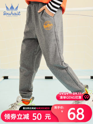2021秋冬新款,水孩儿 男童单毛圈全棉运动长裤(105~170码)4色58元包邮