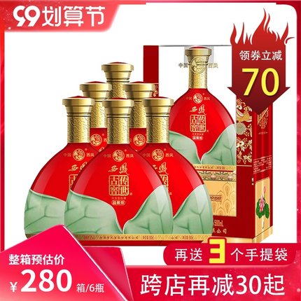 低而不淡、高而不烈、绵长而尾净、丰满而协调、饮后特别舒适。目前500mL*6瓶整箱装天猫商城苏沟酒类旗舰店售价¥368,可领取¥280优惠券,券后实付¥88包邮,随箱附赠3个手提袋
