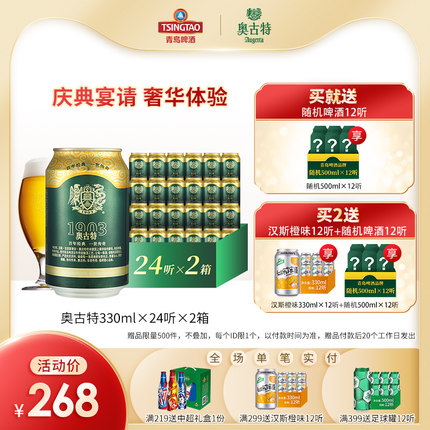 奥古特旗舰店, 9月9~11日 99划算节, ¥268元 99划算价, -25元优惠券, =243元 到手。规格为330ml*24听*2箱,共48听