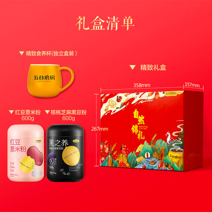 五谷磨房 核桃黑芝麻黑豆粉 600g*2罐 礼盒装 99.8元划算价