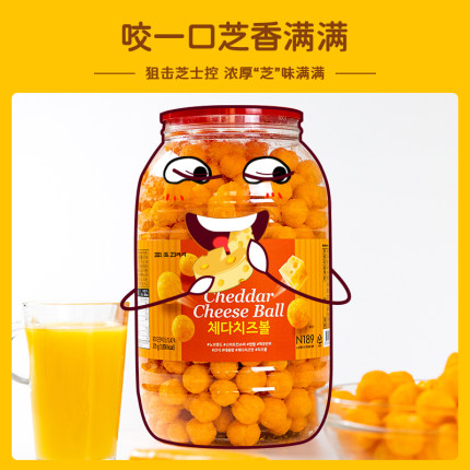 临期白菜!韩国进口,No Brand 切达芝士球 大桶装370g*2桶新低49.9元包邮(新低24.95元/桶)